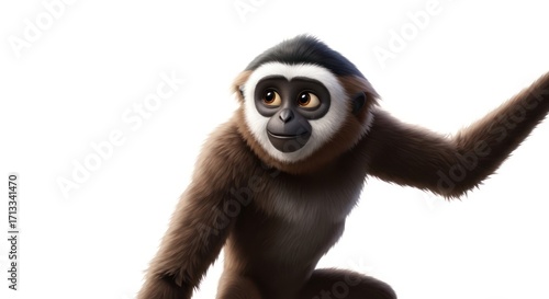Obraz premium Enchanting gibbon illustration with expressive eyes and striking contrasting fur patterns