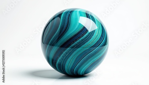 © Mr.Pancho Store, Fototapeta premium Enchanting Glass Egg with Swirling Blue and Green Patterns on White Background. A glass egg with a blue and black swirl pattern.