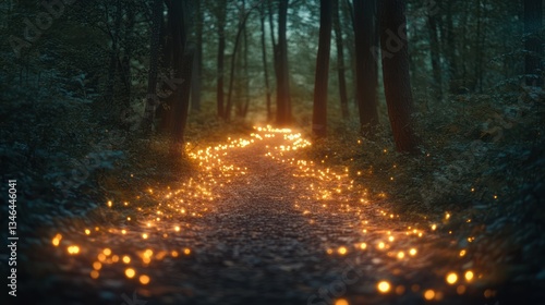 Fototapeta premium Enchanting glowing path through dark forest