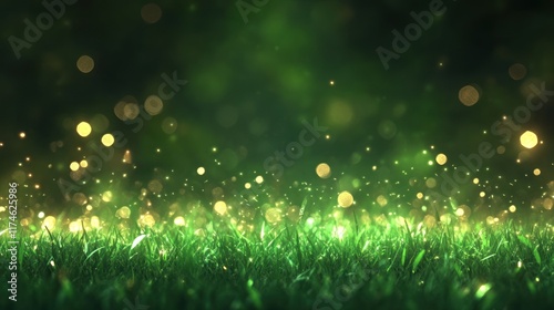 © Tuong, Naklejka premium Enchanting Green Meadow with Shimmering Lights