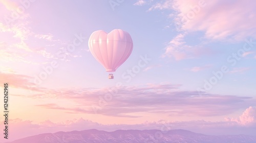 Fototapeta premium Enchanting Heart-Shaped Hot Air Balloon Floating in Pink Sky