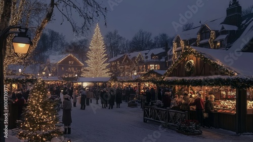 Fototapeta premium Enchanting holiday market filled with sparkling lights and joyful carolers...