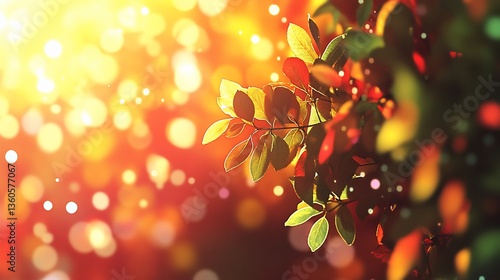 Obraz premium Enchanting interplay of light, foliage, and soft bokeh creating a warm scene