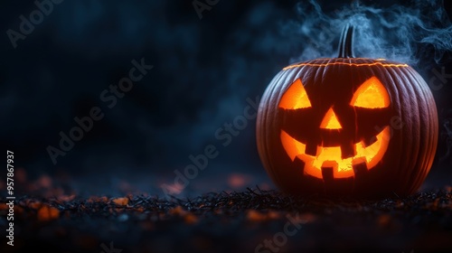 Naklejka premium Enchanting Jackolanterns in Misty Halloween Night