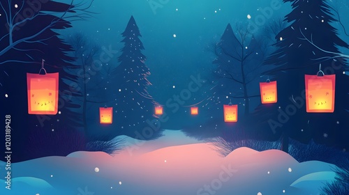 Naklejka premium Enchanting lantern festival in a snowy forest at night mystical and serene...