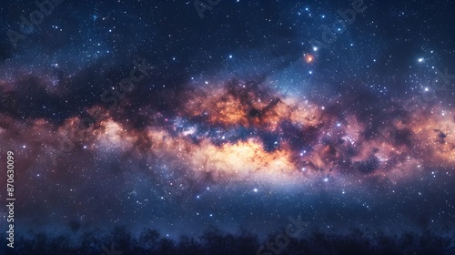 Fototapeta premium Enchanting Milky Way Panorama with Glowing Galactic Core and Twinkling...