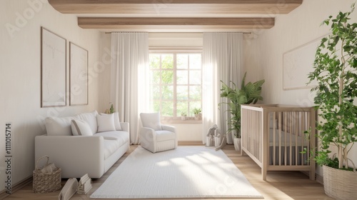 Obraz premium Enchanting Modern-Medieval Nursery: A Blend of Soft Tones, Contemporary...