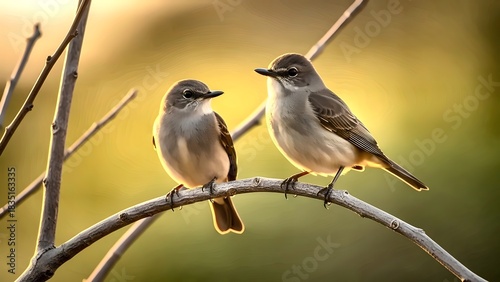 Fototapeta premium Enchanting Morning Light Captures Two Verditer Flycatchers Perched Gracefully on a Twig, Embracing the Serene Beauty of Wildlife in a Natural Setting with an Artistic and Peaceful Atmosphere 184