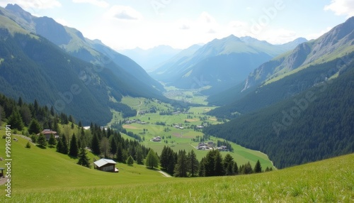 © SwathiFX, Obraz premium Enchanting mountain valley a serene escape