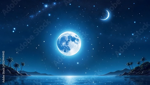 © Anusa, Naklejka premium Enchanting night sky over a serene ocean landscape