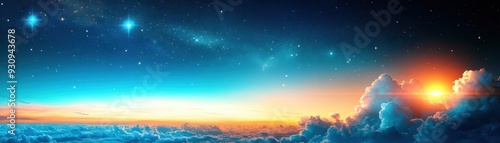 © Yuparet, Naklejka premium Enchanting Night Sky with Twinkling Stars and Playful Clouds for Copy Space.