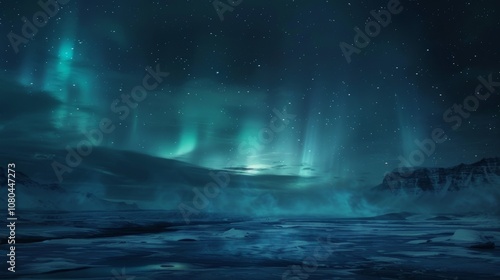 Naklejka premium Enchanting Northern Lights Dance Over Icelandic Landscape