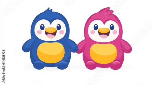 © Artajar, Fototapeta premium Enchanting penguin pair pixelated cartoon characters holding hands adorable digital art vector illustration joyful companionship perfect for kids design