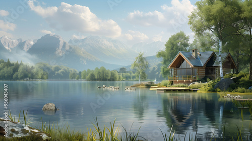 Fototapeta premium Enchanting Photo Realistic Image of Tranquil Forest Glade with Sunlight...