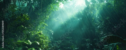 © AshrofS, Obraz premium Enchanting rainforest a captivating journey through lush greenery and ethereal sunlight filtering through the canopy