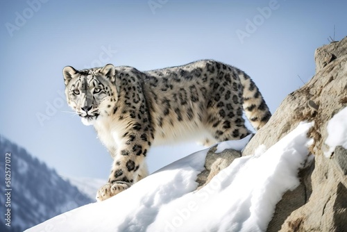 Obraz premium Enchanting Snow Leopard Stalking the Himalayan Mountains, created with...