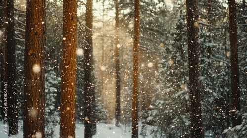 © Photock Agency, Fototapeta premium Enchanting Snowy Pine Forest at Sunset