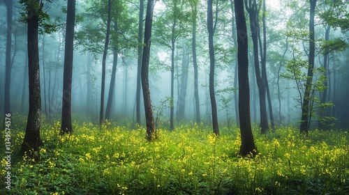 © khaas, Obraz premium Enchanting Spring Forest Morning in Ukraine