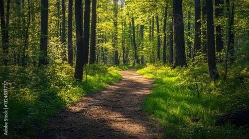 © Manny, Fototapeta premium Enchanting Spring Forest Path in Lush Greenery - Scenic View