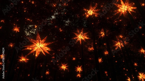 Naklejka premium Enchanting Starry Forest Night Magical Illuminated Trees
