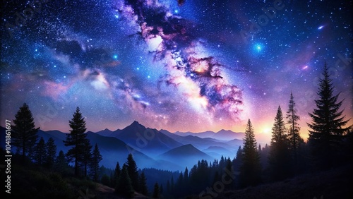 Naklejka premium Enchanting Starry Night Sky with Twinkling Stars Silhouette Photography for...