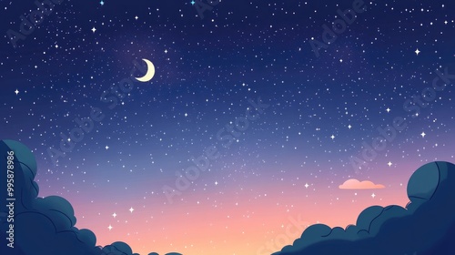 © NFTNexus, Naklejka premium Enchanting starry nights featuring luminous stars against a gradient sky presented in a 2D cartoon style illustration