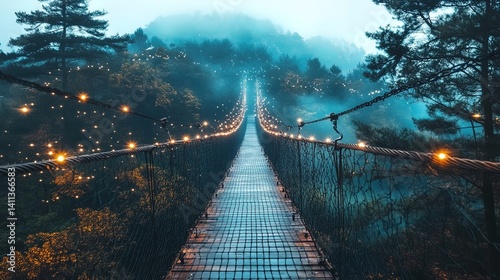 © PeopleWorker, Obraz premium Enchanting Suspension Bridge at Dusk