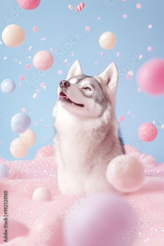 © Phawika, Fototapeta premium Enchanting Tiny Werewolf Surrounded by Glittering Candy Sparkles in a Whimsical Fantasy Setting Perfect for Halloween or Playful Themes