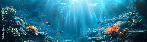 Naklejka premium Enchanting Underwater Marine Sanctuary Showcasing Protected Species in Their...
