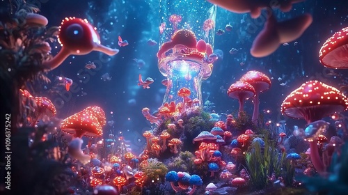 Fototapeta premium Enchanting Underwater Mushroom Kingdom A Fantasy Digital Art Scene