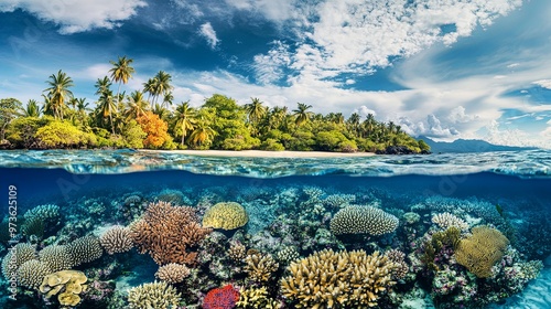 © huiying, Naklejka premium Enchanting Underwater Scene with Vibrant Coral Reefs and Diverse Marine Life, Highlighting the Breathtaking Beauty and Biodiversity of the Ocean Ecosystem