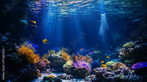 © huiying, Naklejka premium Enchanting Underwater Scene with Vibrant Coral Reefs and Diverse Marine Life, Highlighting the Breathtaking Beauty and Biodiversity of the Ocean Ecosystem