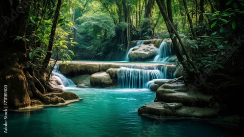Fototapeta premium Enchanting Waterfall in Lush Tropical Forest