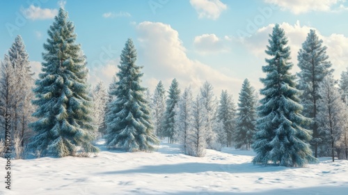 Naklejka premium Enchanting Winter Landscape with Snow-Covered Pine Trees in Soft Pastel Colors
