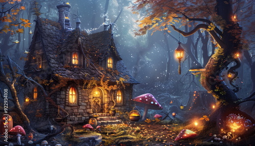 Fototapeta premium Enchanting Witch's Cottage in the Forest