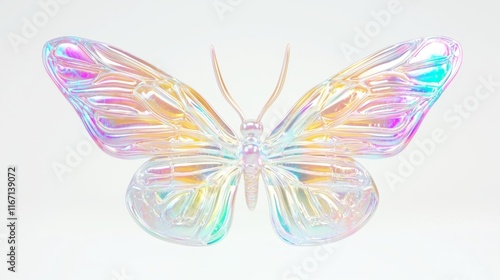 © Jakkarin, Obraz premium Enchanting Y2K Butterfly 3D Icon with Iridescent Wings and Colorful Patterns on White Background
