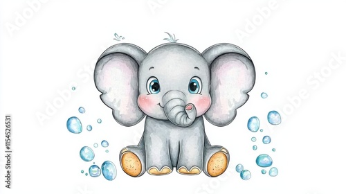 Obraz premium Enchantingly Cute Baby Elephant Character Playfully Blowing Bubbles in Nature