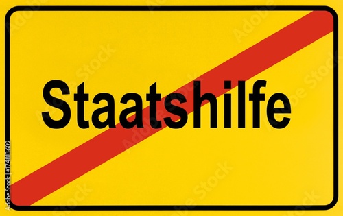 Fototapeta premium End of town sign with the name Staatshilfe, symbolic image for putting an end to Government assistance