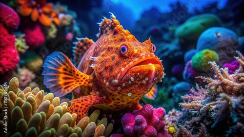 Obraz premium Endangered Frogfish at Night: Coral Reef Underwater Photography