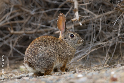 Fototapeta premium Endangered riparian brush rabbit, , seen in the wild in North California