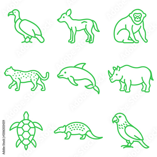 Naklejka premium Endangered Species, animals, icons set number 2, vector
