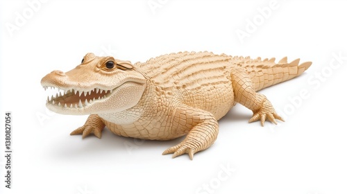 © Sirilak, Fototapeta premium Endangered species rehabilitation conservation wildlife rescue. A detailed wooden model of a crocodile, showcasing intricate carvings and lifelike features, highlighting craftsmanship and design.