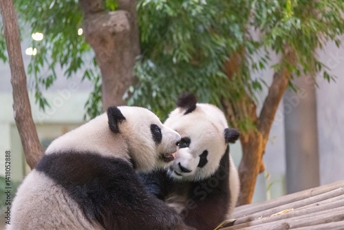 © Belie, Obraz premium Endearing Pandas Cuddling A Gentle Moment in Their Sanctuary