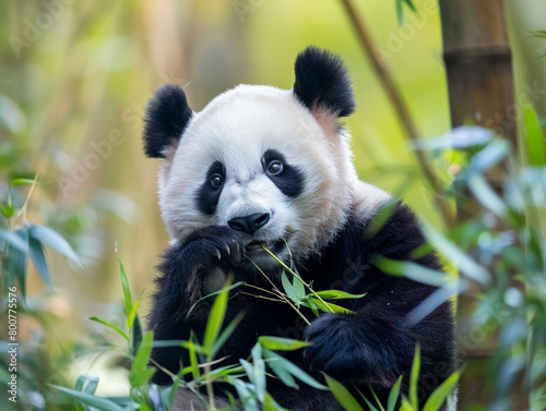 © Papisut, Fototapeta premium Endearing pandas munch on bamboo shoots