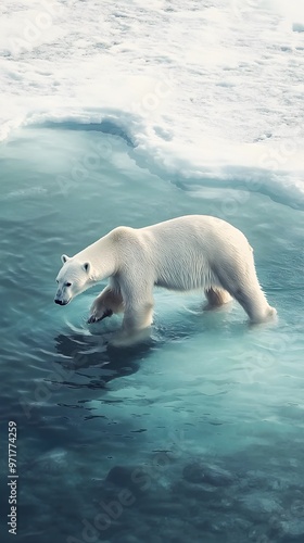 © Shyamal, Naklejka premium Endearing polar bear searching for fish with attentive gaze