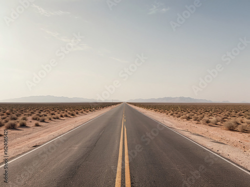 Naklejka premium Endless asphalt road stretching through a vast desert landscape to the horizon
