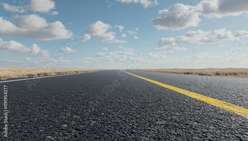 Naklejka premium Endless Asphalt Road Under a Blue Sky: A Journey Ahead