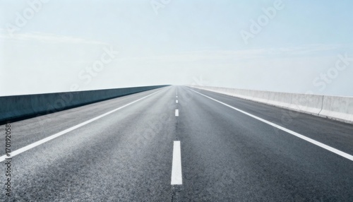 Fototapeta premium Endless Asphalt Road Under a Pale Sky, Highway Stretching into the Distance, Freedom and Travel Concept