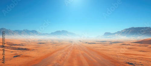 Naklejka premium Endless Desert Road: A Journey into the Orange Sands