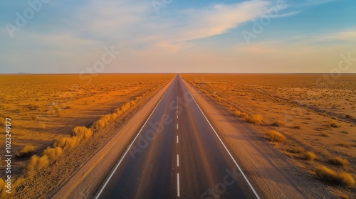 Naklejka premium Endless Desert Road Leading to the Rising Sun